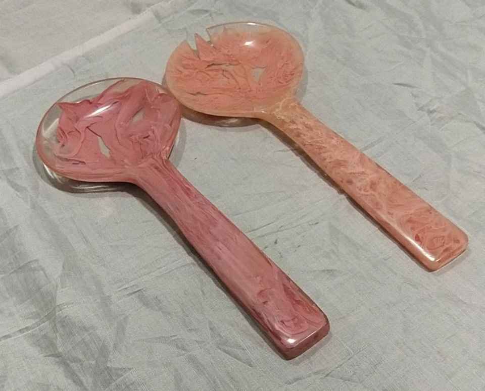 Cuillère en résine pour serveur avec finition polie et mélange de couleurs élégant, ustensile léger fait à la main pour les repas quotidiens et le service