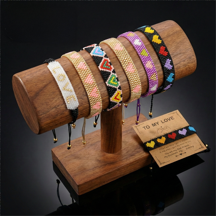 Bracelets en perles de rocaille à motif cœur bohème Resoul, bracelet manchette tressé avec lettre d'amour, fait main, réglable, cadeau de Saint-Valentin, bijoux pour femme