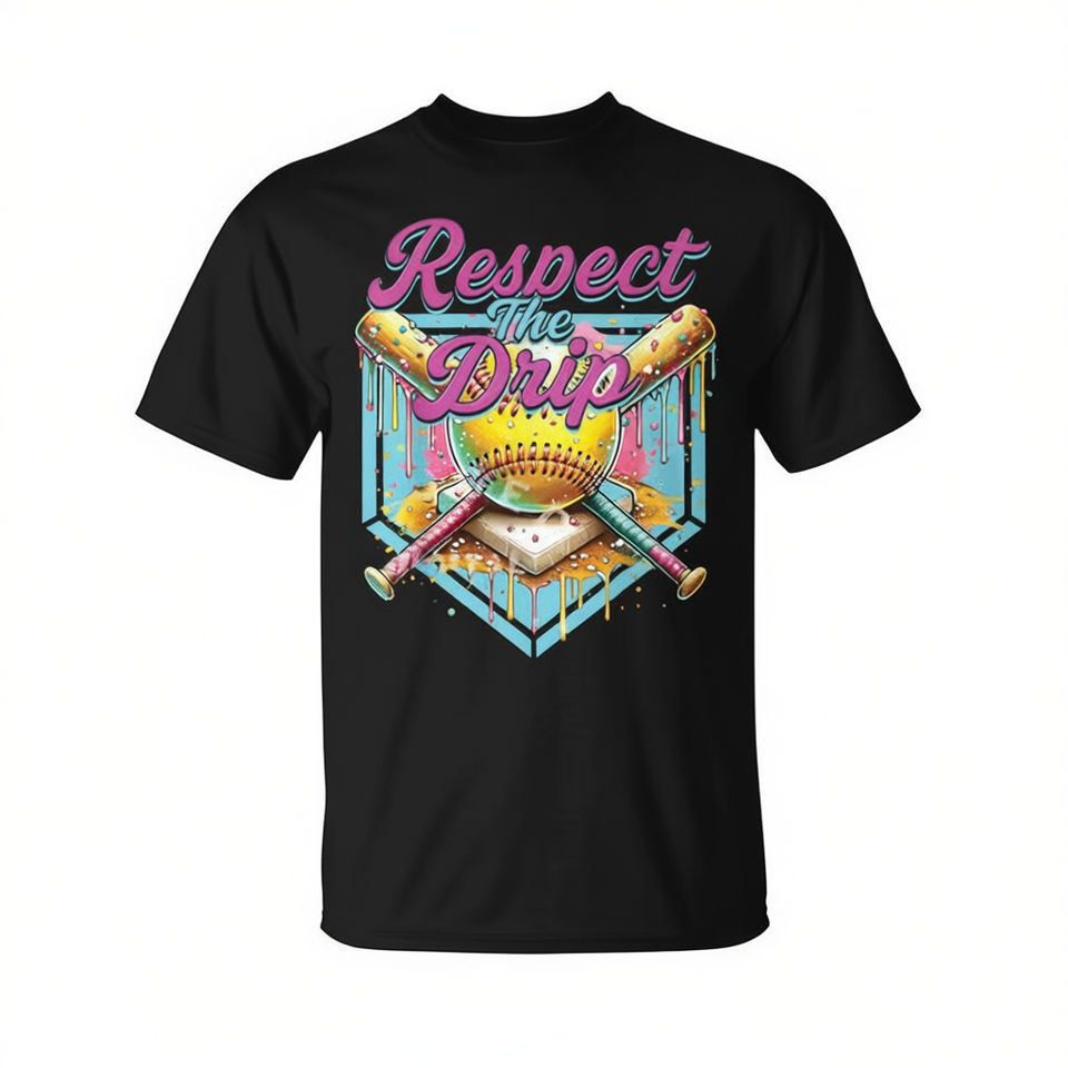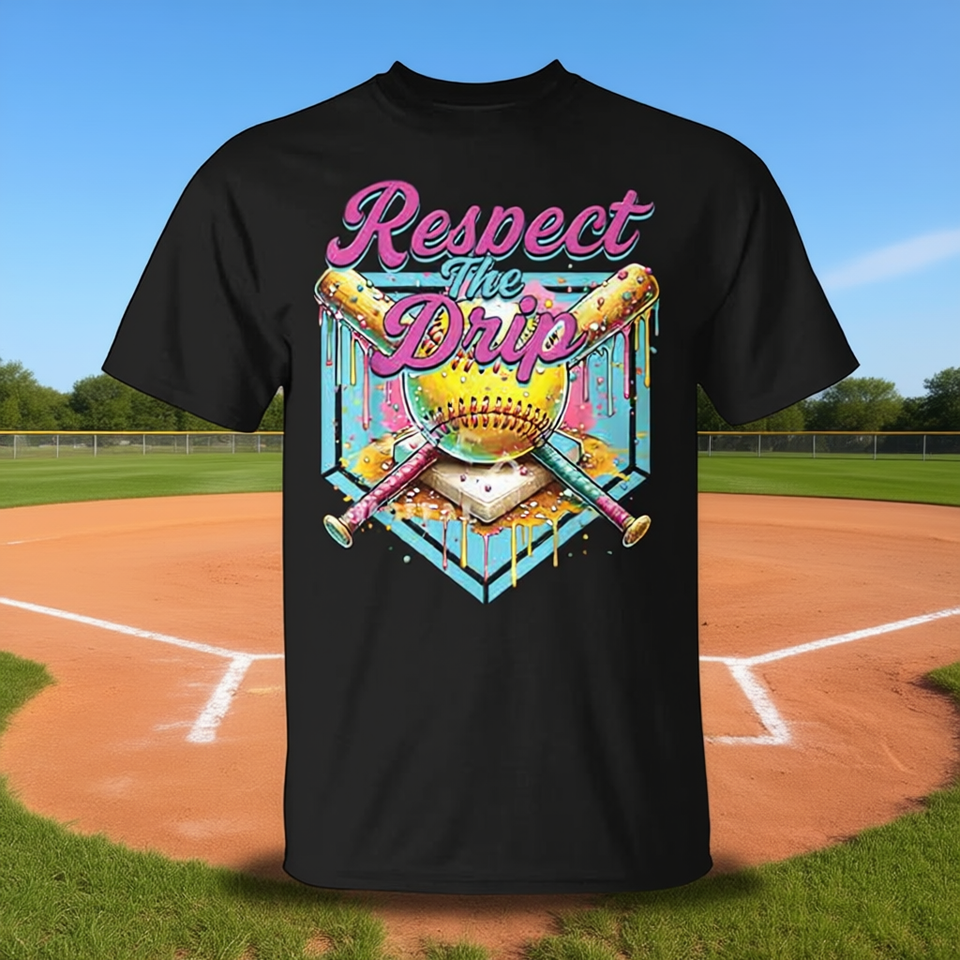 T-shirt Respect The Drip Softball, taille pour jeunes, design graphique coloré