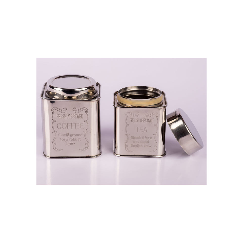 Restaurant et hôtel comptoir décoratif boîte de rangement ensemble de deux café thé conteneur bidon nouvelle arrivée couleur argent