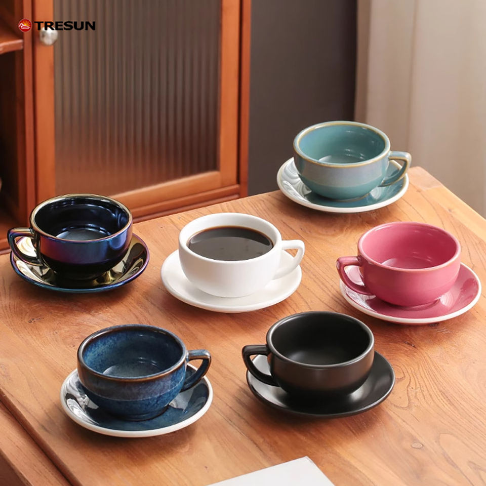Mug à café de restaurant personnalisé 320 ml, tasses à café/thé en céramique rétro rose avec soucoupe