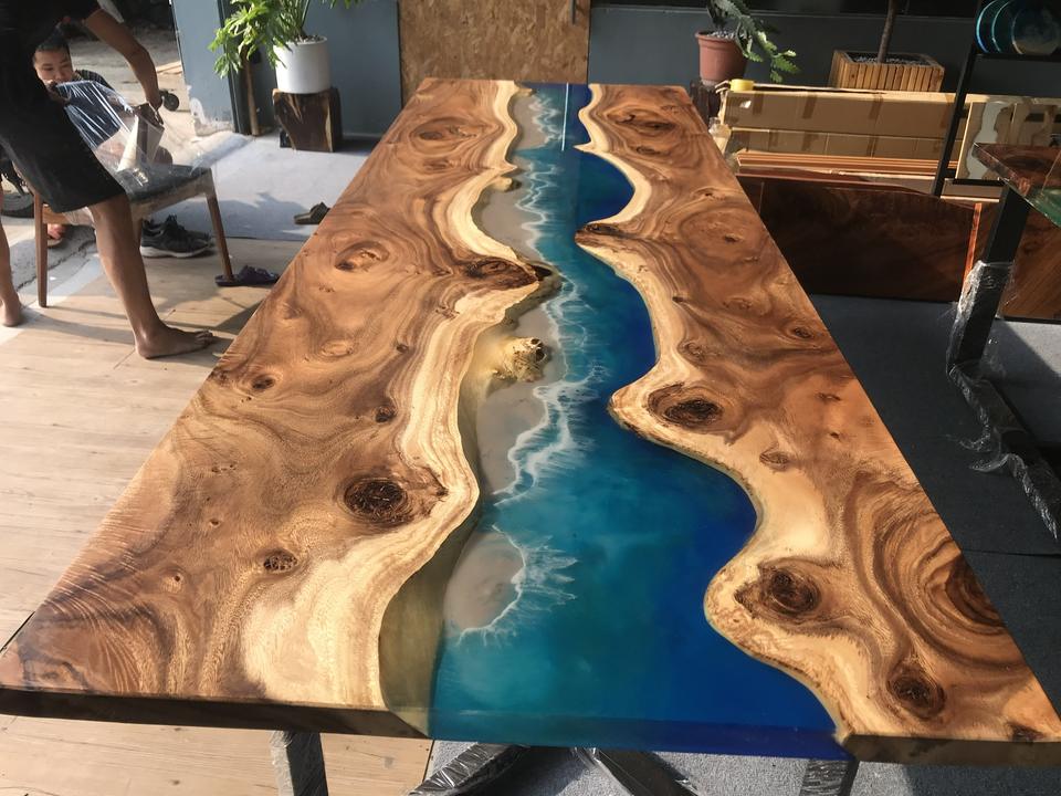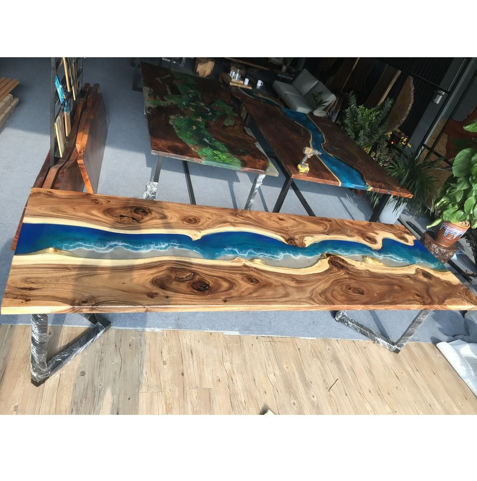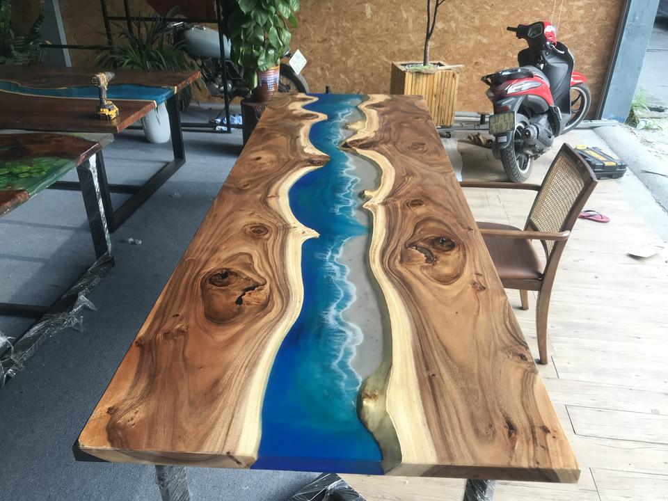 Plateau de table de restaurant design pour maisons modernes, mobilier sur mesure en résine époxy et bois massif