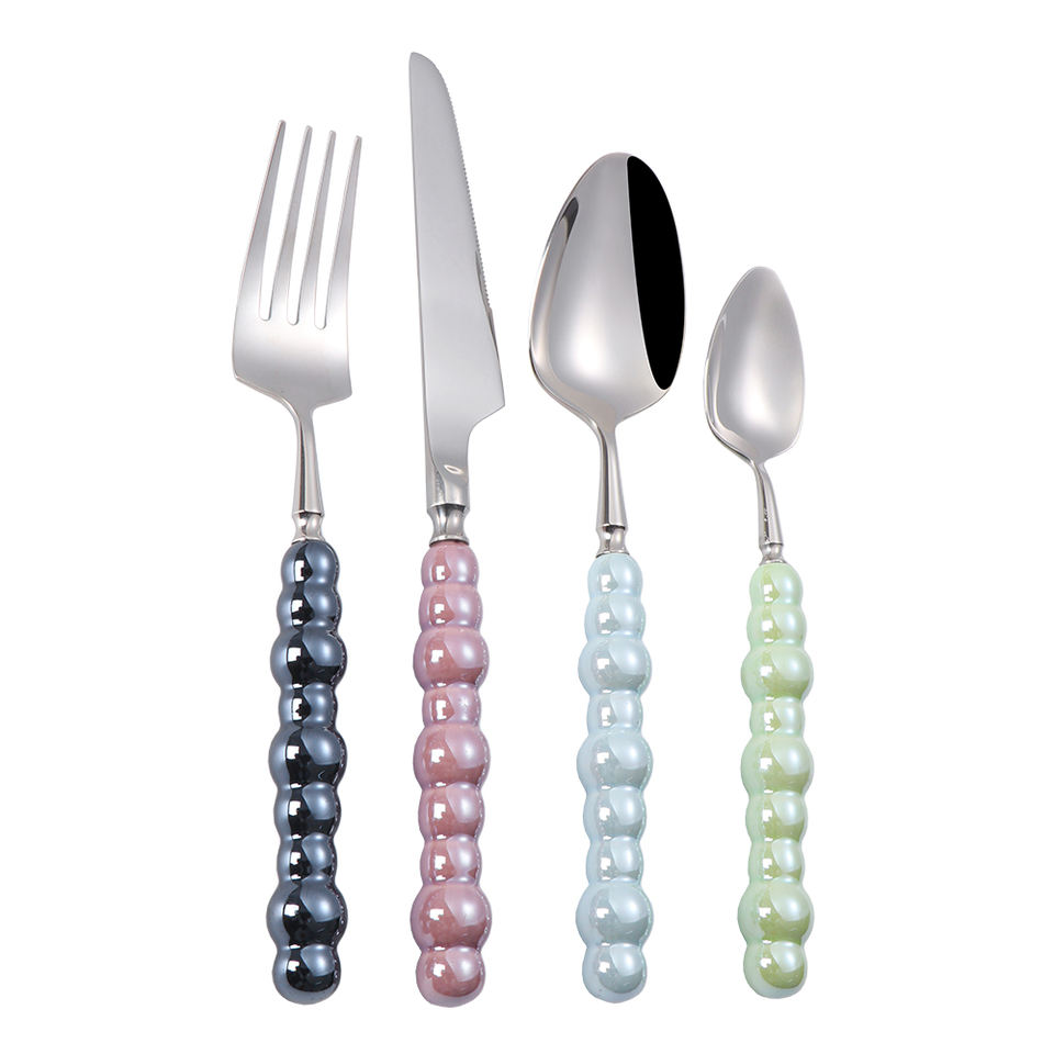 Ensemble de couverts écologiques en acier inoxydable 304 pour restaurant, poignée unique en perles, cuillère, fourchette, couteau Menagere Couvert de 4 pour les mariages