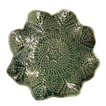 Plateau de nourriture en forme de feuille en métal avec finition élégante vert foncé parfait pour le stockage et le service des aliments au restaurant