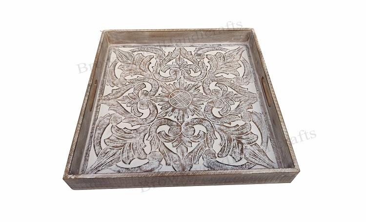Plateau de service en bois d'acacia, mangue et mangue au design élégant avec poignée Plateau en bois de forme carrée pour restaurant et hôtel Artisanat de haute qualité