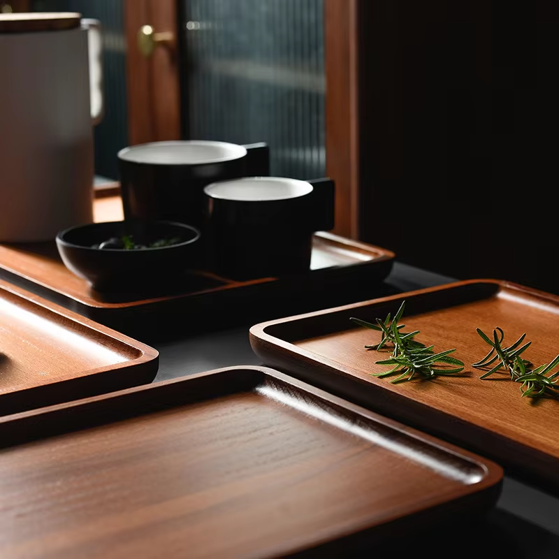 Restaurant Cuisine En Bois Naturel Assiette Plateau Plat Woonde Vaisselle Carbonisé Hêtre Palette Pour Le Service