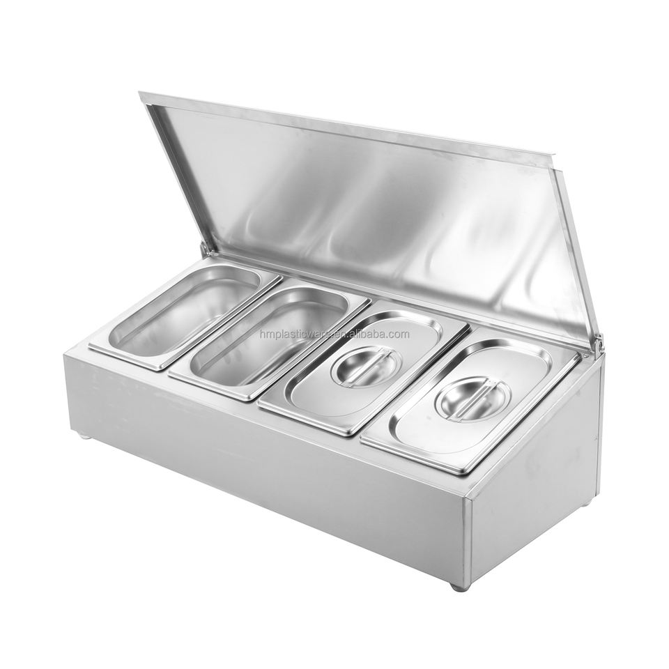 Fournitures de cuisine de restaurant Porte-condiments commercial en acier inoxydable 4x1/4GN Grille de casserole avec couvercle