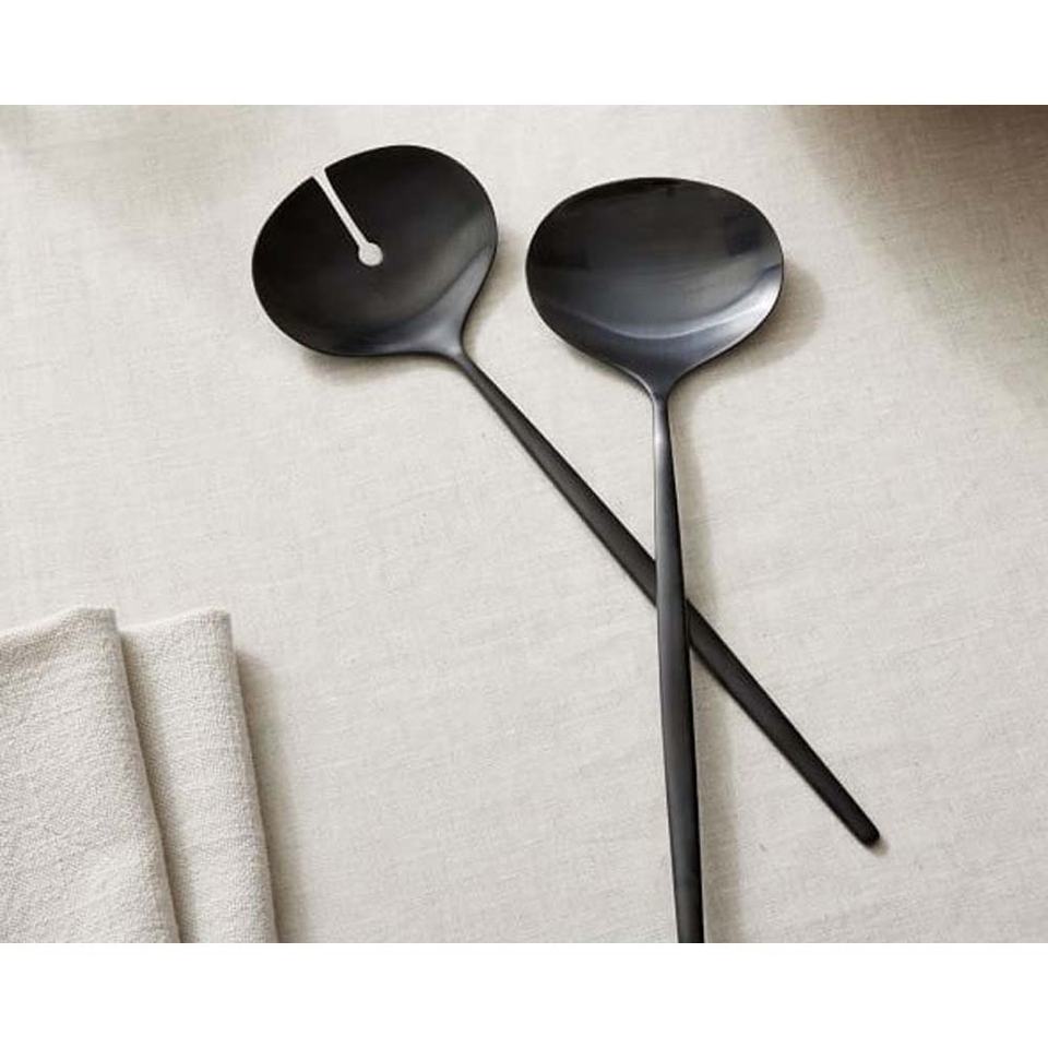 Restaurant Matte Black Spoon Fork Salad Server Set with Silverware Knife Fish Fork Spoon Salad Server Set