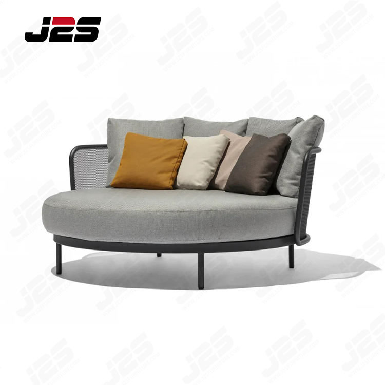 Chaise longue en osier pour restaurant Chaise longue ronde avec coussins et cadre en métal pour jardin et patio