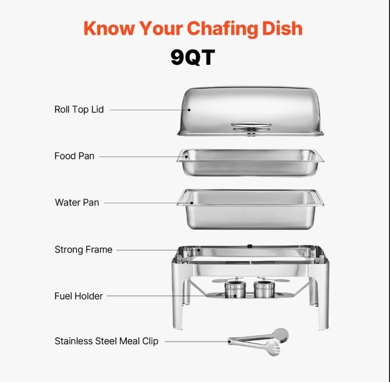 Ensemble de réchauds rectangulaires à couvercle roulant de qualité restaurant, 9 litres, en acier inoxydable, pour buffet, au meilleur prix