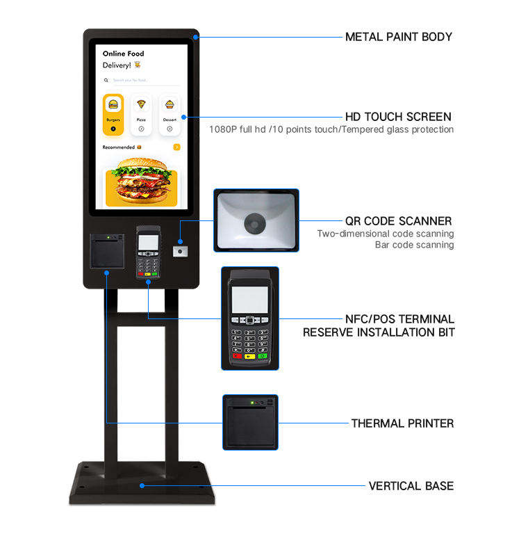 Terminal de commande automatique pour restaurant, KFC, McDonald's, restauration rapide, borne de commande, équipement, machine de paiement en libre-service 21,5 pouces
