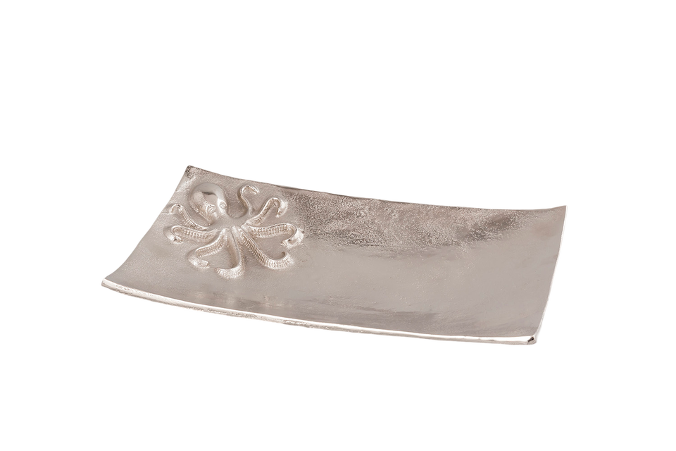 Plateau de service de restaurant plateau de service de salade et de pain en aluminium de forme de rectangle avec la conception de poulpe