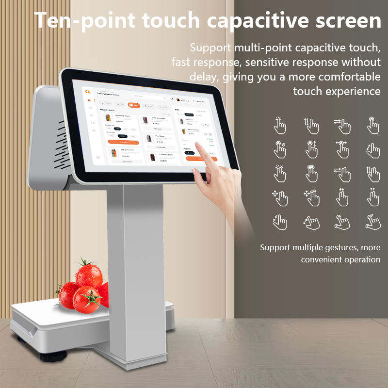 Terminal de point de vente tout-en-un pour restaurant et supermarché, système Windows et Android, avec imprimante et balance