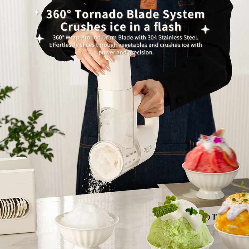 Coupe-légumes et fruits, fait de la glace pilée et de la glace à neige lisse.