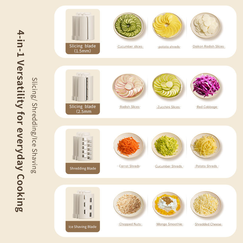 Fonction:Trancher les légumes et les fruits, râper, râper la glace, râper le fromage.