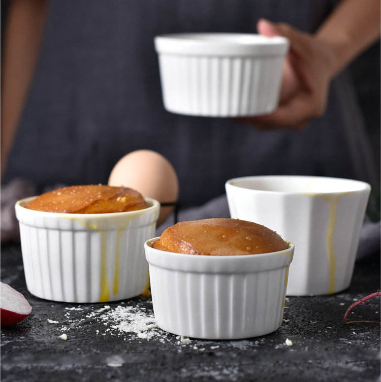 Restaurant used custom cheap white glaze souffle dessert pudding bowl ceramic ramekin