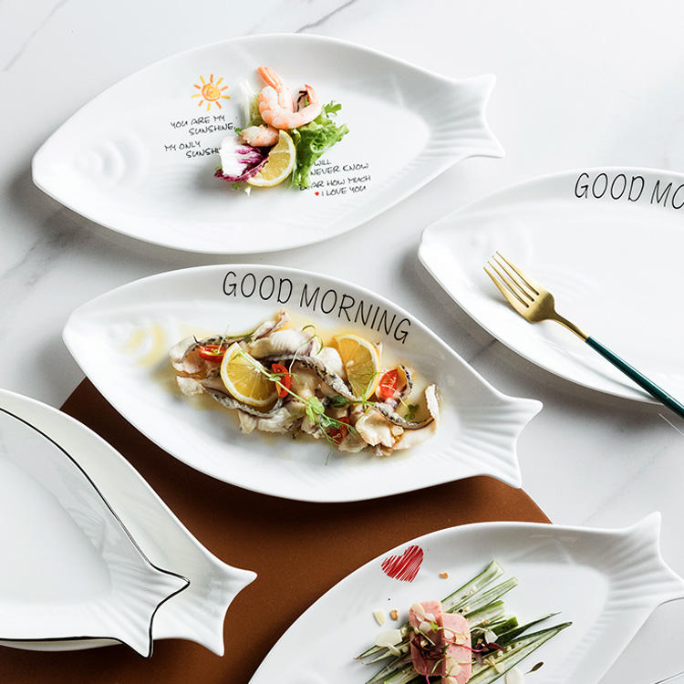 Plat et assiette en mélamine en forme de poisson pour buffet, utilisés dans les restaurants