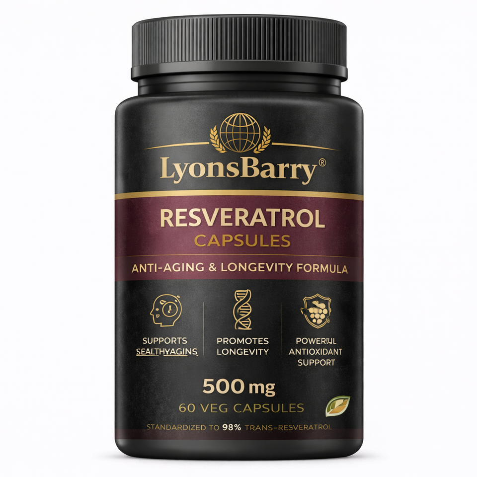 Capsules de resvératrol anti-âge, protection cellulaire, antioxydant, complément alimentaire, 500 mg, 100 unités, marque Lyonsbarry