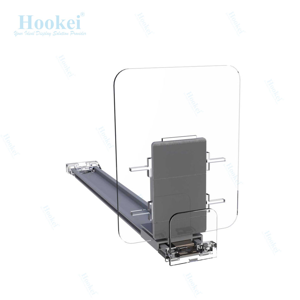 Système de poussoir pour étagères de présentoir de produits en acrylique pour cigarettes et tabac, réglable et à ressort