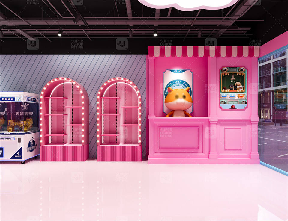 Au détail Led Éclairage Arqué Griffe Boutique Vitrine Personnalisé Action Figure Magasin Meubles Verre Jouet Cadeau Boutique Affichage Vitrine
