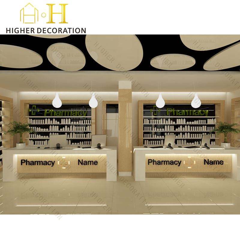 Comptoir de magasin médical de détail Étagères de magasin médical Étagères de pharmacie Vitrine cosmétique murale