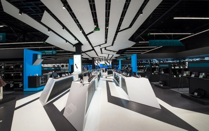 Décoration de magasin moderne au détail, mobilier d'exposition, design d'intérieur de magasin d'informatique