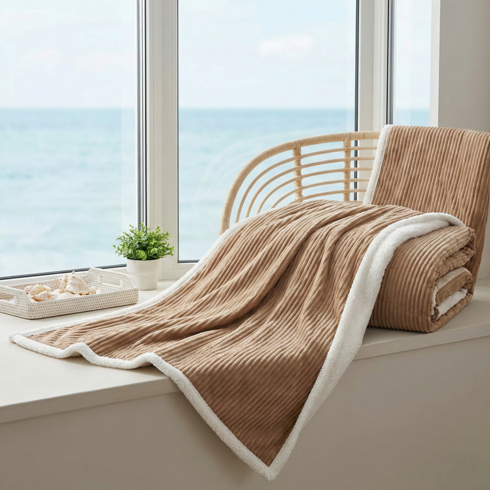 Nom du produit:Couverture en flanelle côtelée jacquard 3D rayée, doublée en velours Shu.