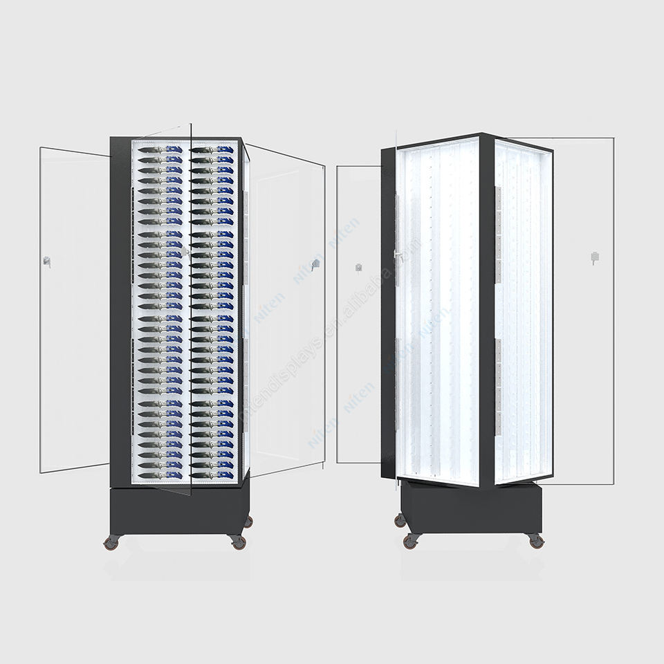 Appareils d'affichage de matériaux en métal rotatifs au détail parquetant des vitrines de couteau acrylique avec des roues