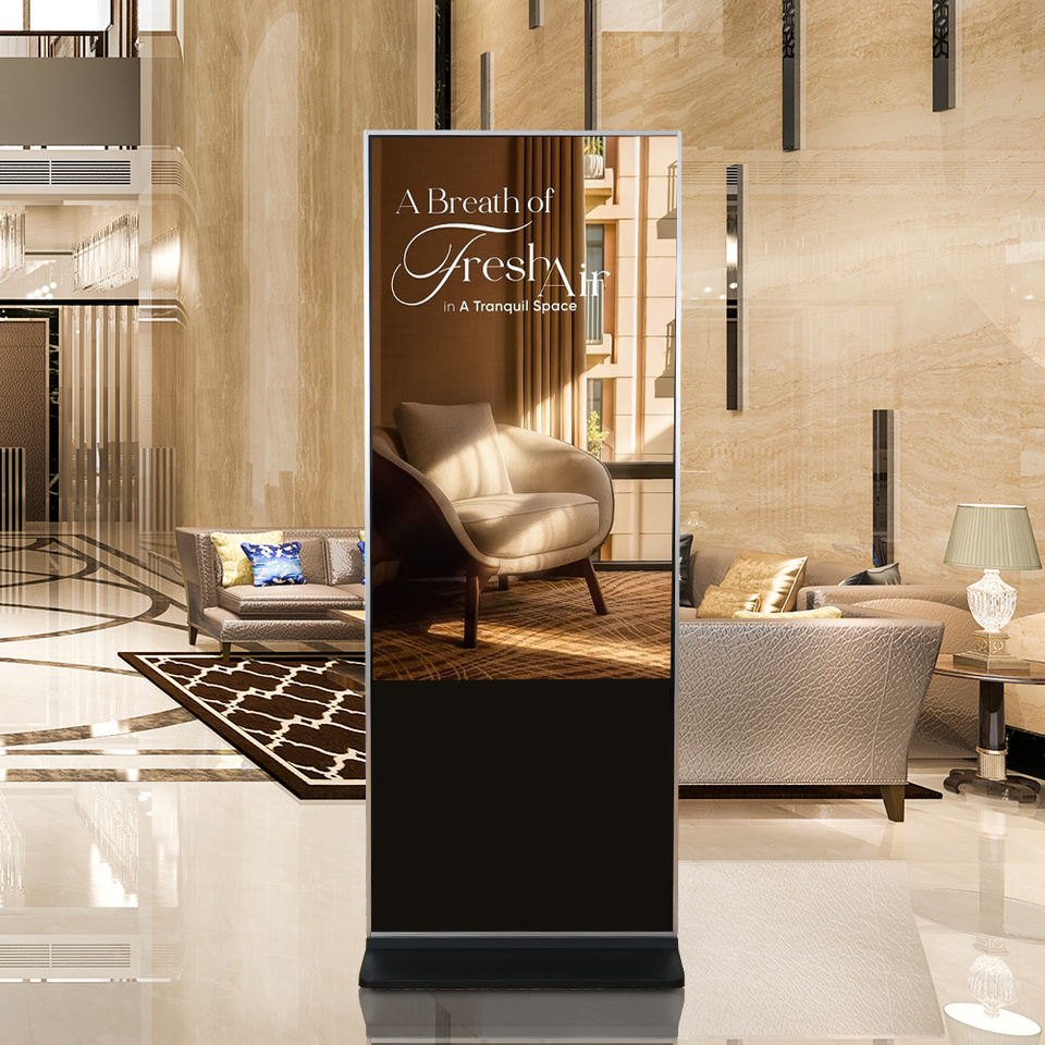 Afficheur numérique pour le commerce de détail, 43 pouces, Android, sur pied, affichage numérique couleur, kiosque, CMS à distance, animation, capacitif