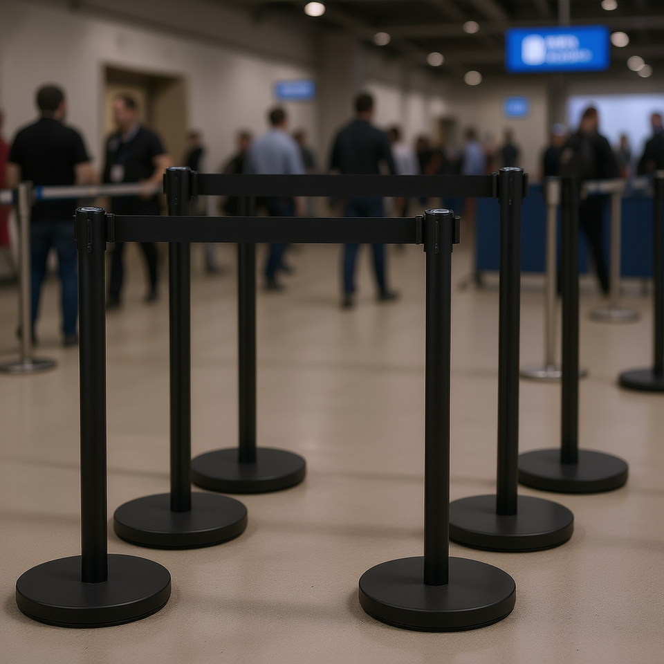 Barrière de contrôle des foules à sangle rétractable, 6,6 pieds, base en métal noir, montage facile, système de contrôle d'accès
