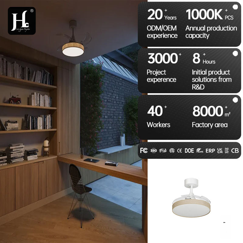Retractable Blades Ceiling Fan with Dimmable LED Light 3 Color Temperatures DC Motor Remote Control 6 Speeds for Living Room