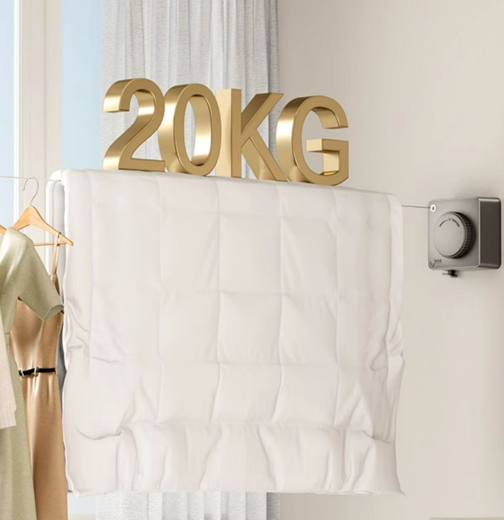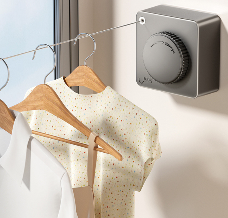 Corde à linge rétractable pour intérieur, corde à linge extérieure anti-affaissement, corde murale en acier inoxydable - 4,8 cm (gris, noir, blanc)