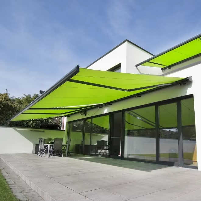 Auvent rétractable électrique à boîte complète, auvent extérieur, cassette complète, design moderne, auvent en aluminium