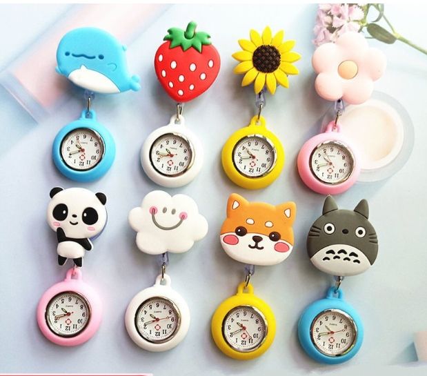 Rétractable Moderne Dessin Animé Motif Infirmière Médecin Poche Accrocher Clips Montres Coloré Hôpital Médical Femmes Hommes Badge Bobine Horloge