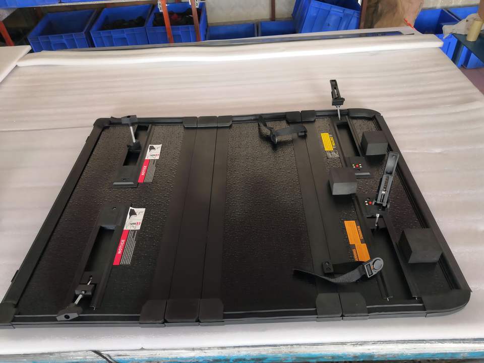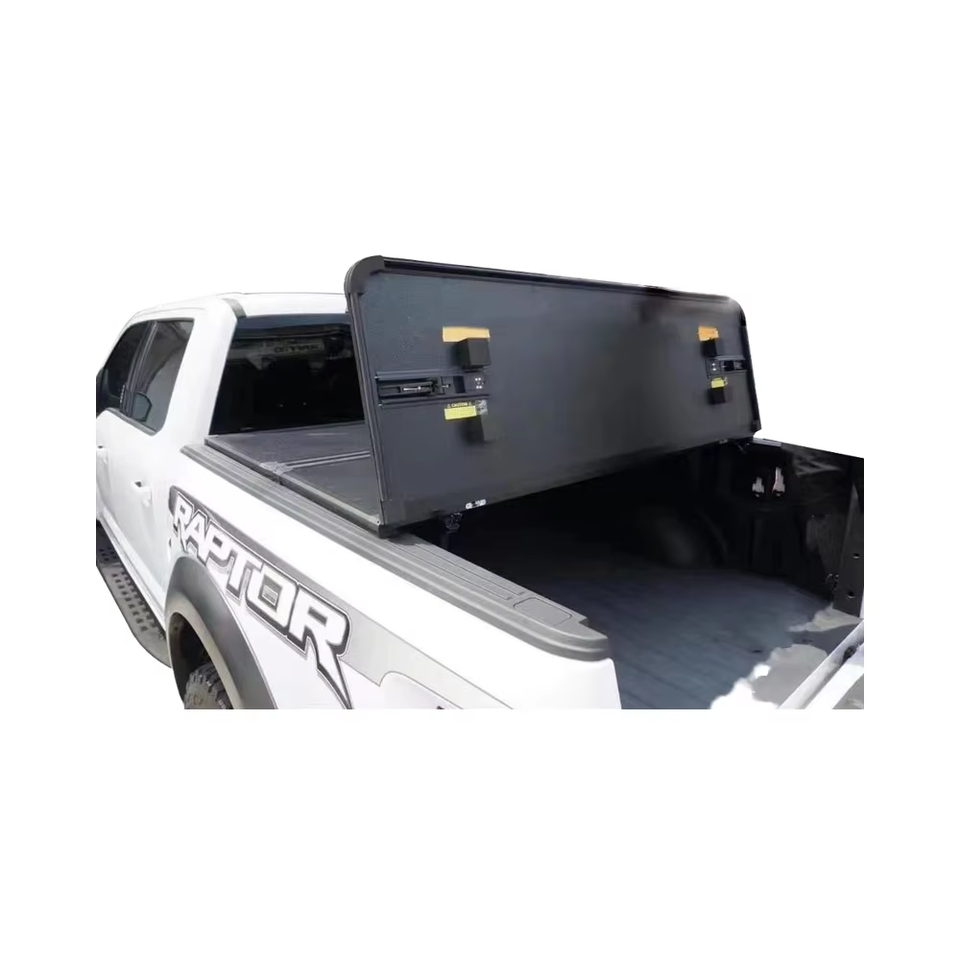 Couvercle de tonneau rétractable en fibre de verre enroulable pour Dodge Ram 1500 & Ford Hard Folding avec fonction de verrouillage pour tout-terrain Quad Fold