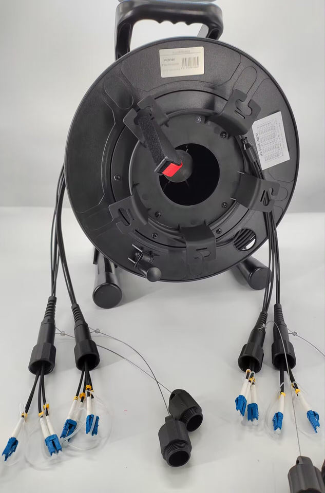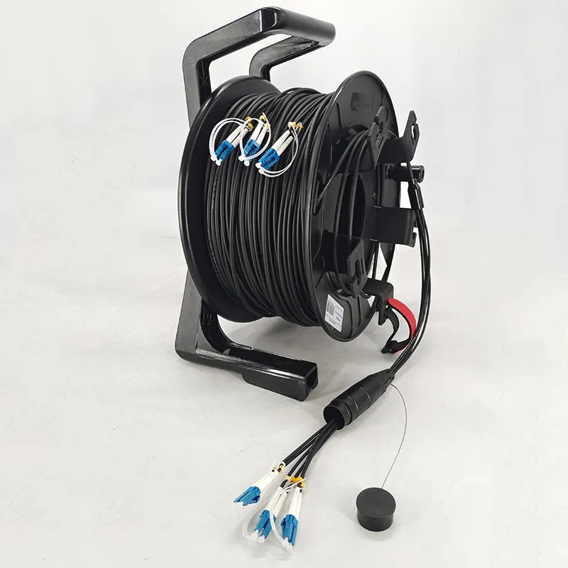 Cordon de raccordement tactique blindé à fibre optique avec enrouleur de câble rétractableNom du produit