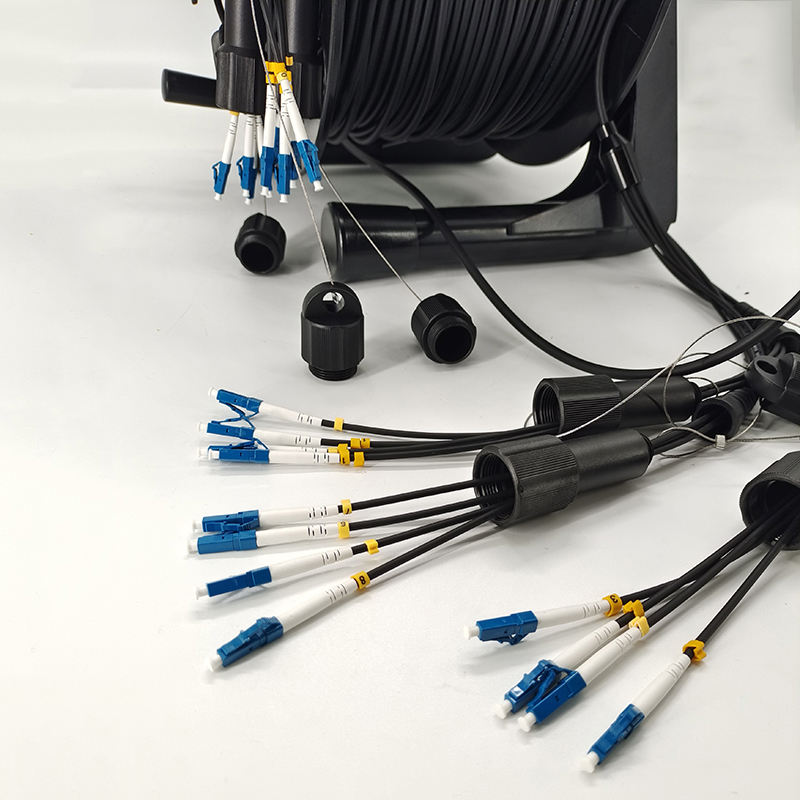 Cordon de raccordement tactique blindé à fibre optique avec enrouleur de câble rétractable
