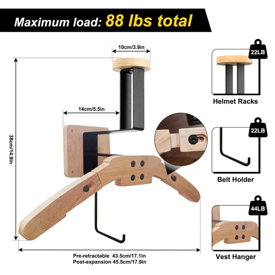 Support mural rétractable en métal robuste à trois niveaux pour gilet tactique, idéal pour le rangement des vélos et motos