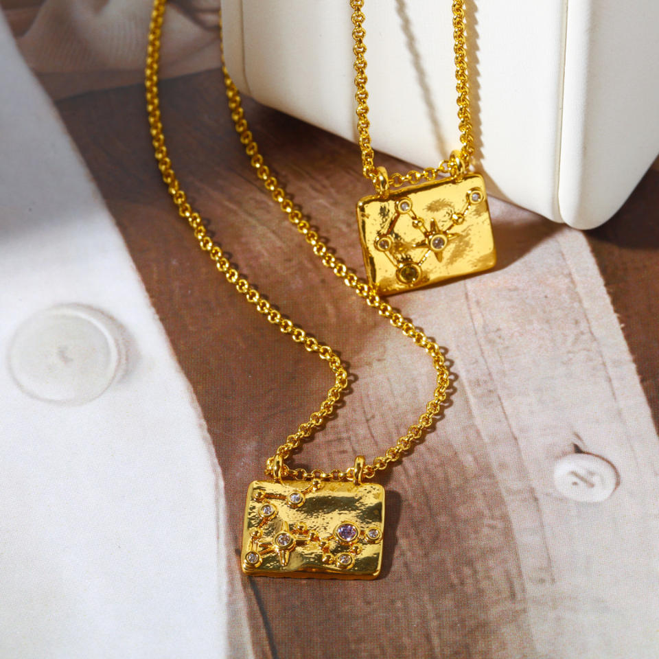 Rétro 12 signe du zodiaque pendentif collier signes étoile graphique lumière luxe cuivre plaqué or véritable 18K bijoux préservant la couleur