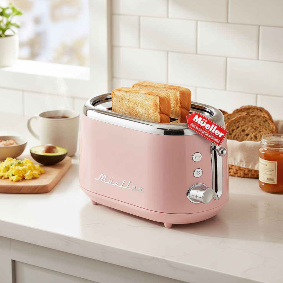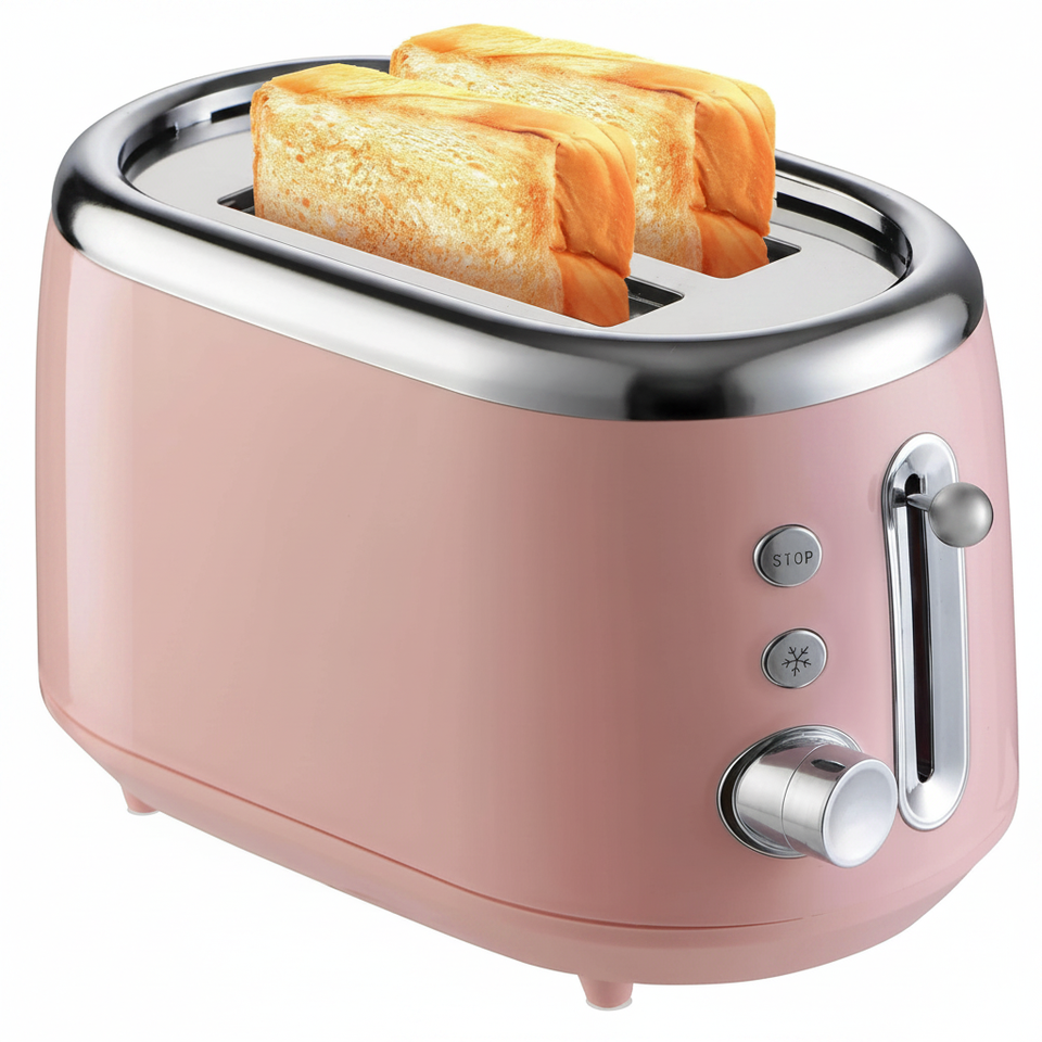 Grille-pain rétro 2 tranches en acier inoxydable avec 7 niveaux de brunissage, 3 fonctions (réchauffement, décongélation, annulation) et bac à miettes amovible