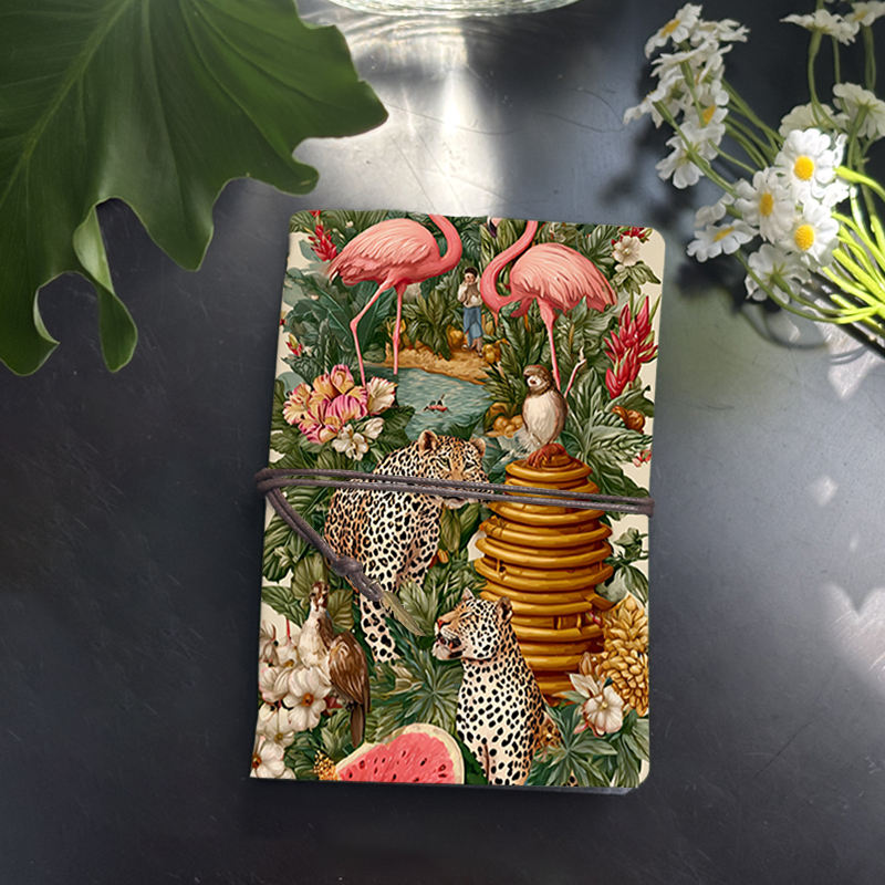 Carnet rétro A6 avec pendentif feuille Cadeau du vendredi noir pour les clients afin de stimuler les liens d'affaires avec Flamingo Leopard Owl Bee Hive