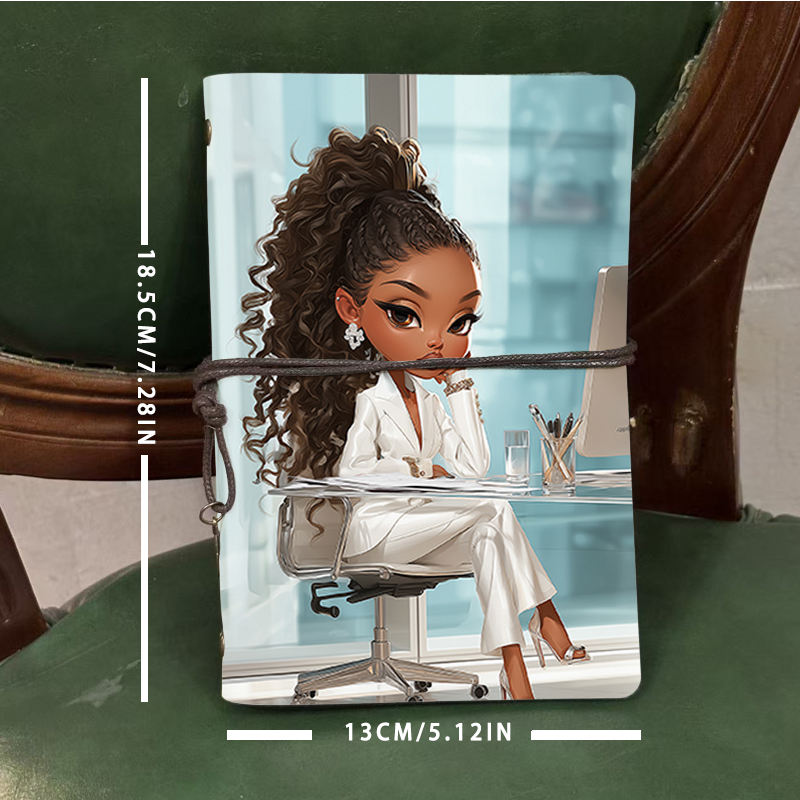 Bloc-notes rétro A6 cadeau charmant pour les bibliothécaires de bureau qui gèrent des livres d'entreprise avec une femme costume blanc bureau imprimé sur t