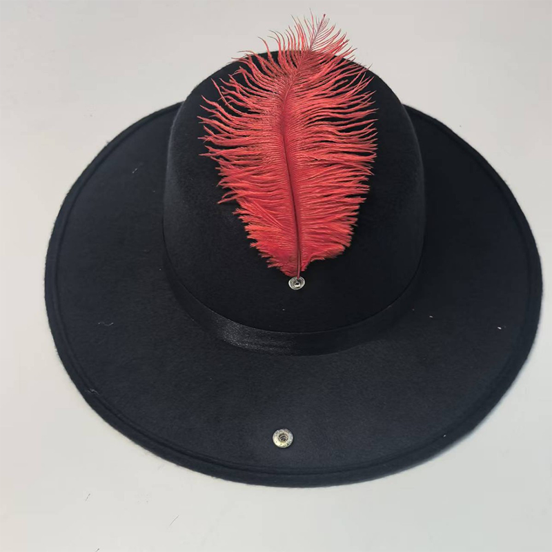 Chapeau en feutre rétro artistique avec grande décoration en plumes, noir, à calotte plate, protection solaire, pour l'extérieur, les voyages et les fêtes