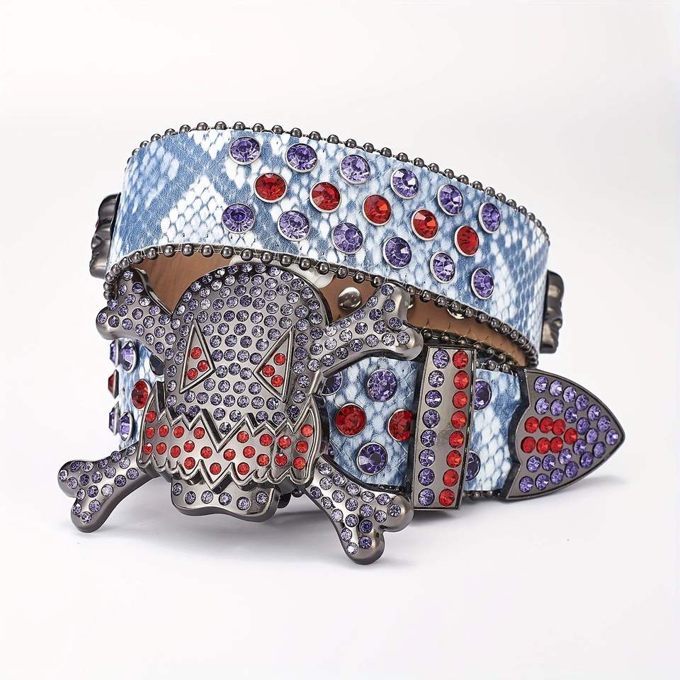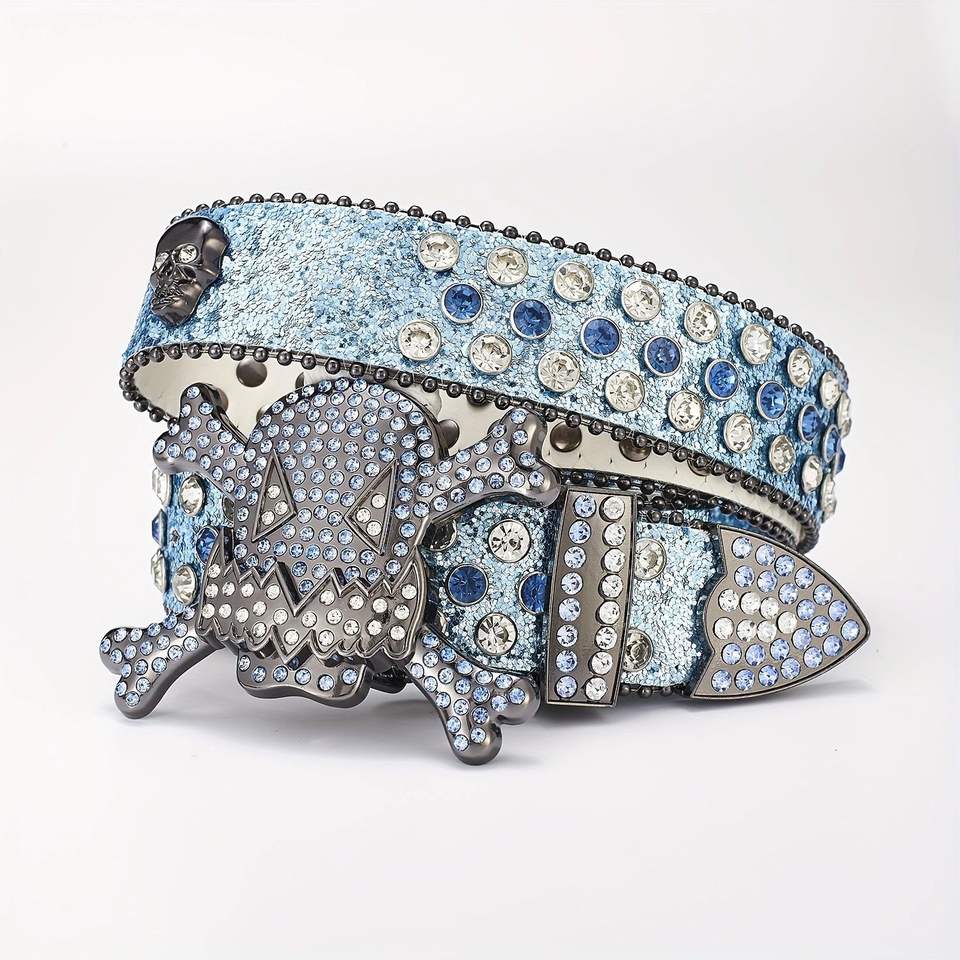 Ceintures en PU rétro brillantes de style occidental avec strass, ceintures pour hommes avec clous brillants, ceinture en cristal de diamant, ceintures Bb Simon