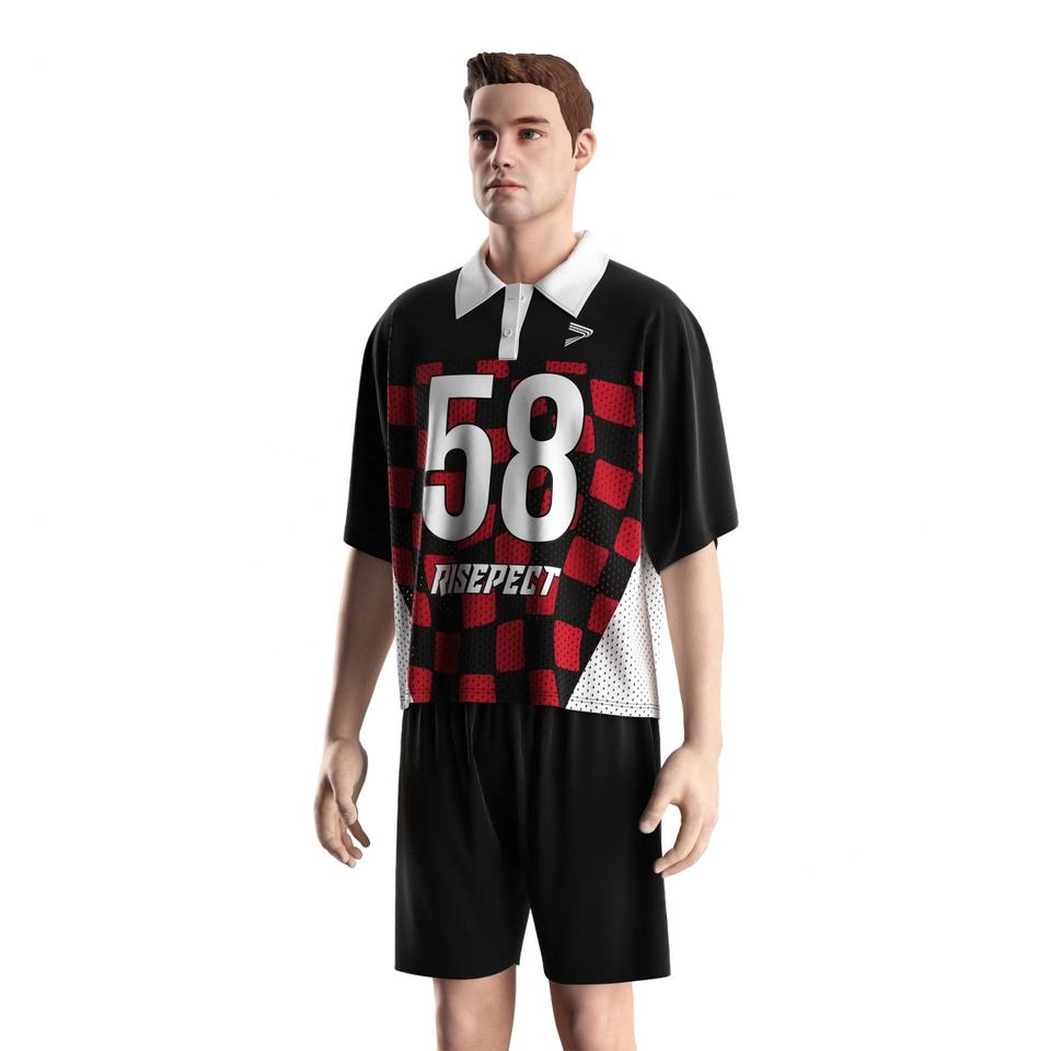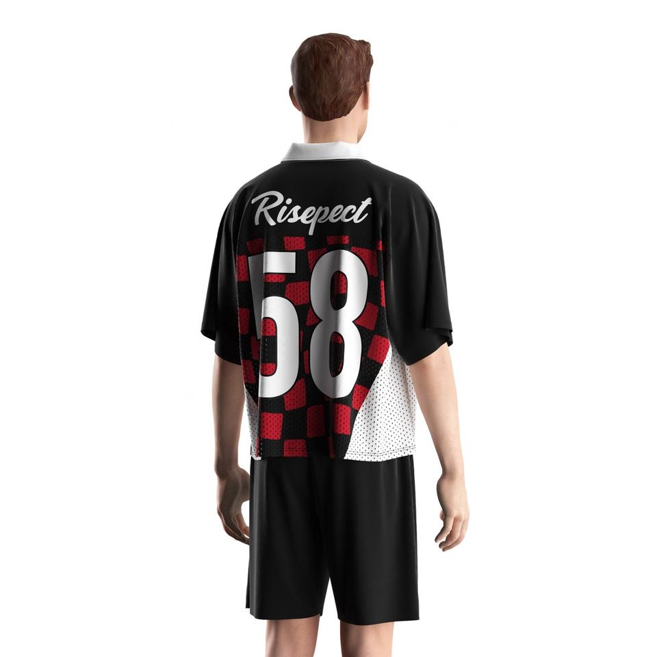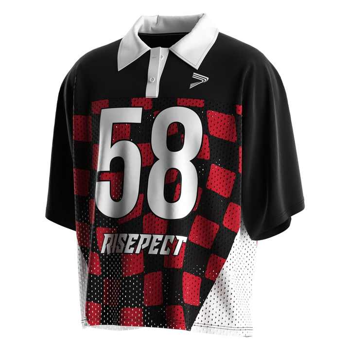 Polo rétro respirant en maille avec col et coutures contrastées, motif football américain pour homme