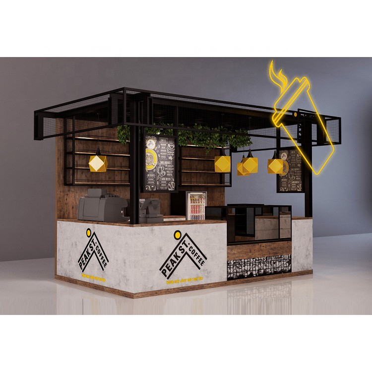 Kiosque de thé à bulles en bois massif, comptoir de bar avec affichage de pâtisseries, design 3D, style rétro, intérieur de magasin, utilisé dans les magasins à café