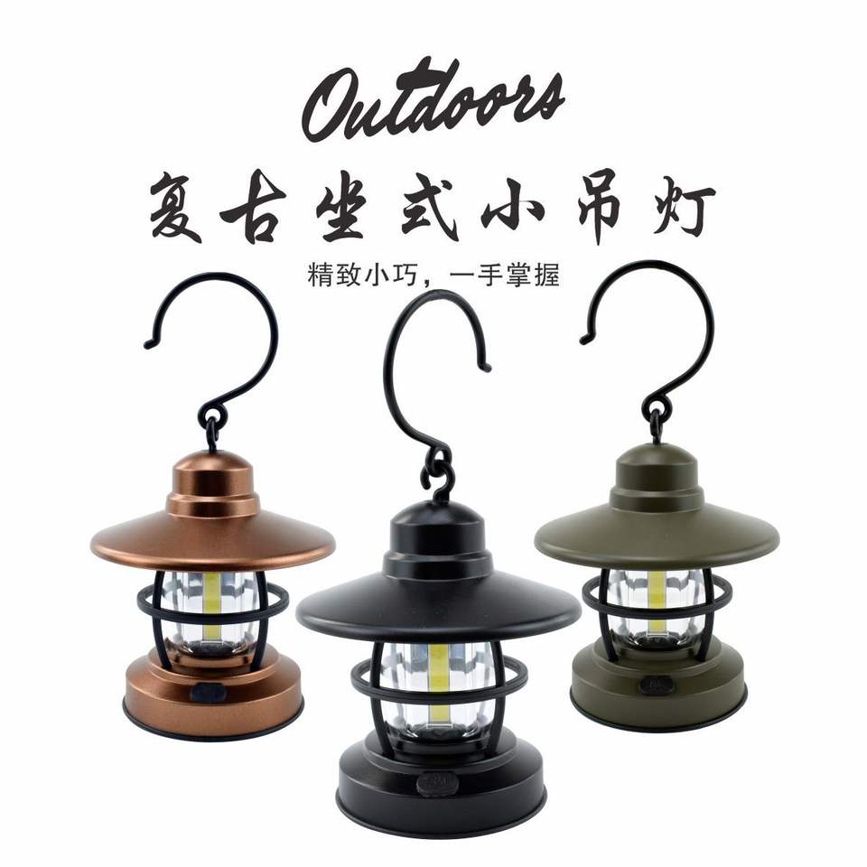 Lanterne de camping rétro à LED, fonctionnant sur piles, lampe suspendue portable pour tente de camping, couleur bronze