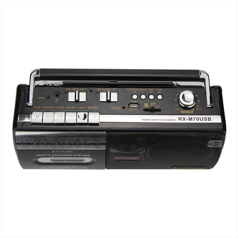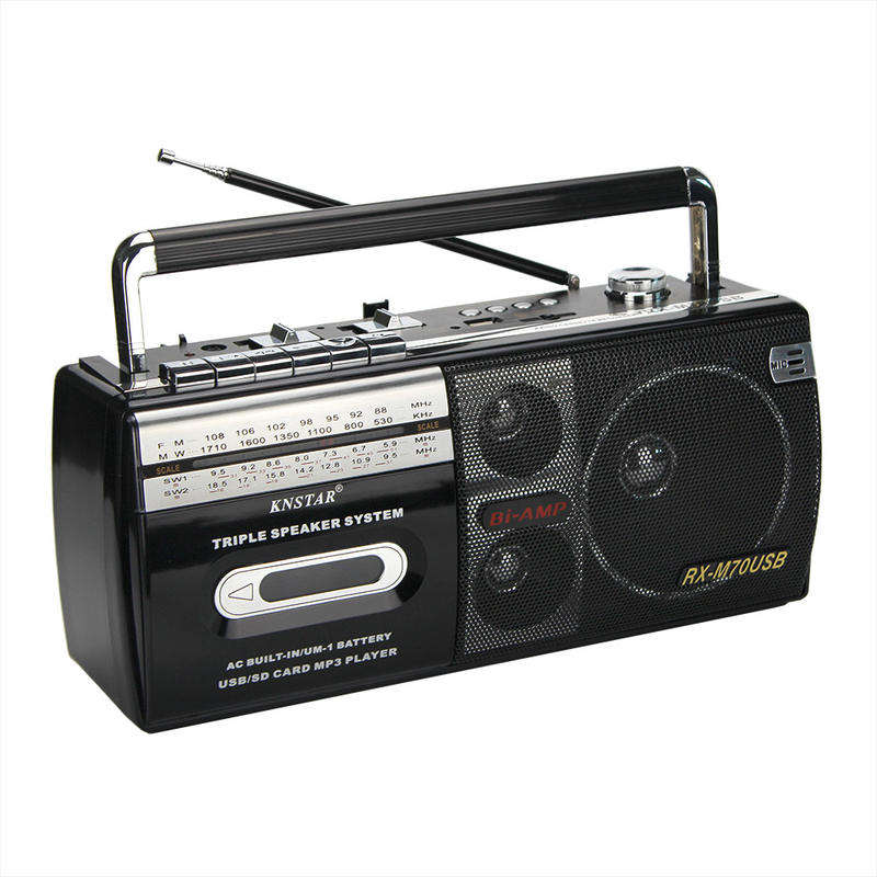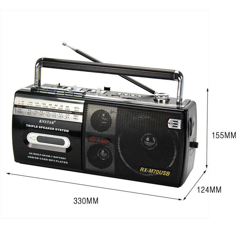 Radio FM stéréo DSP rétro avec lecteur de cassette, prise en charge des cartes TF/SD, lecture USB, style classique, rechargeable par USB