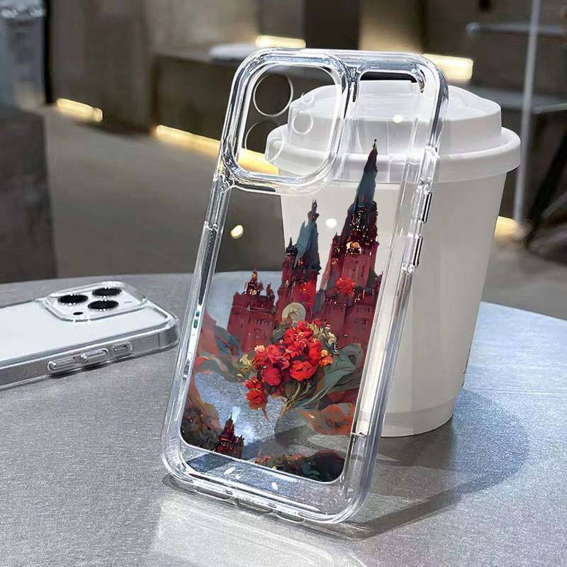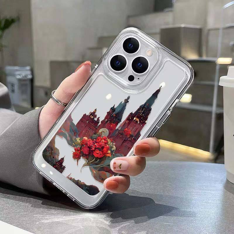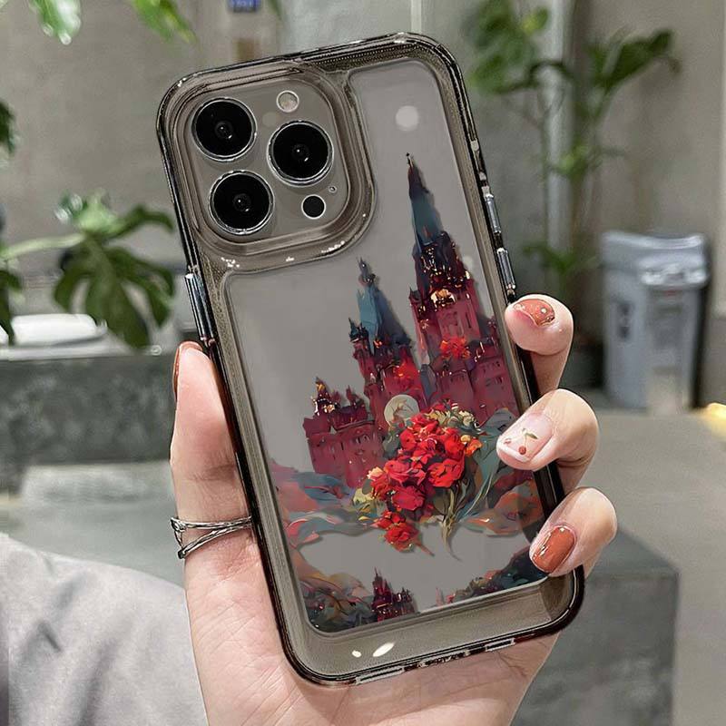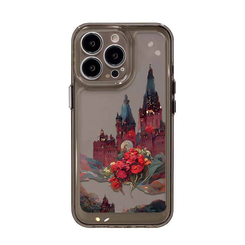 Rétro Château Rouge Fleur Impression Antichoc Espace TPU Housse de Téléphone Portable pour Iphone 8 X Xr Xs 11 12 13 14 15 16 17 Pro Max