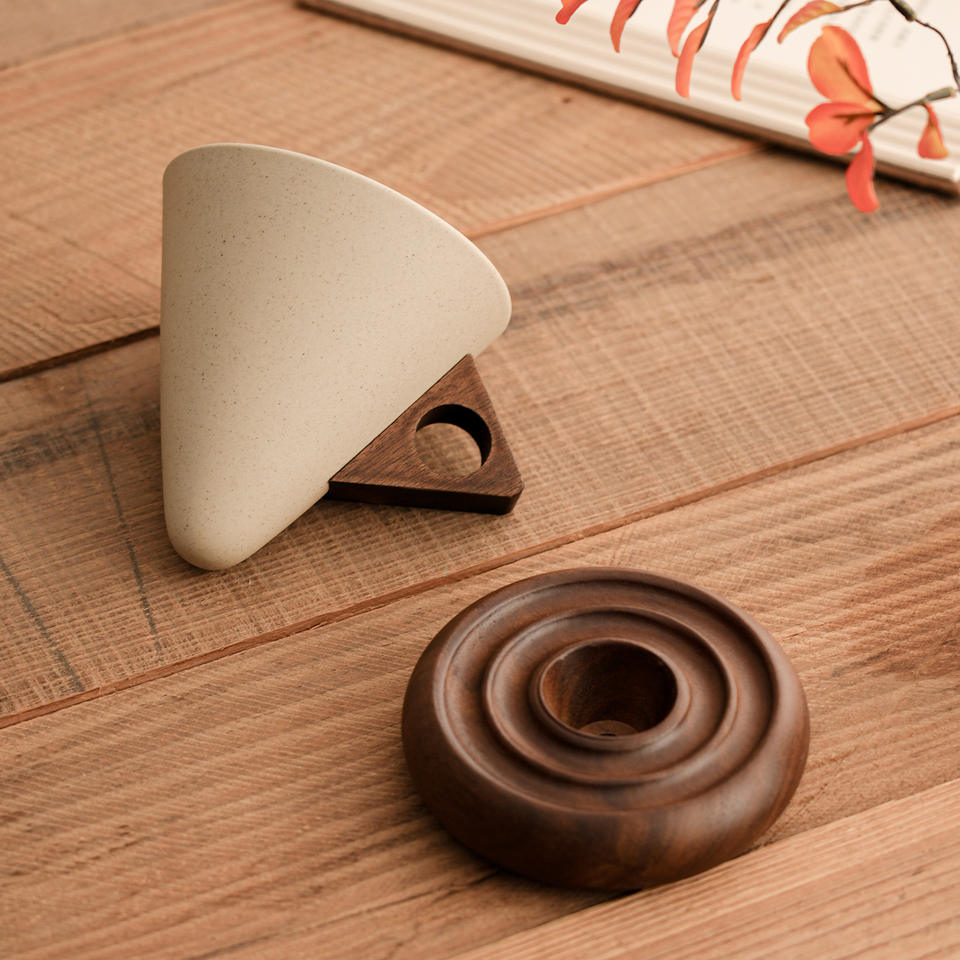 Tasse à café en céramique rétro, ensemble de tasses à café créatives en forme de cône, élégante petite tasse à thé en bois avec poignée en bois massif et sous-verre